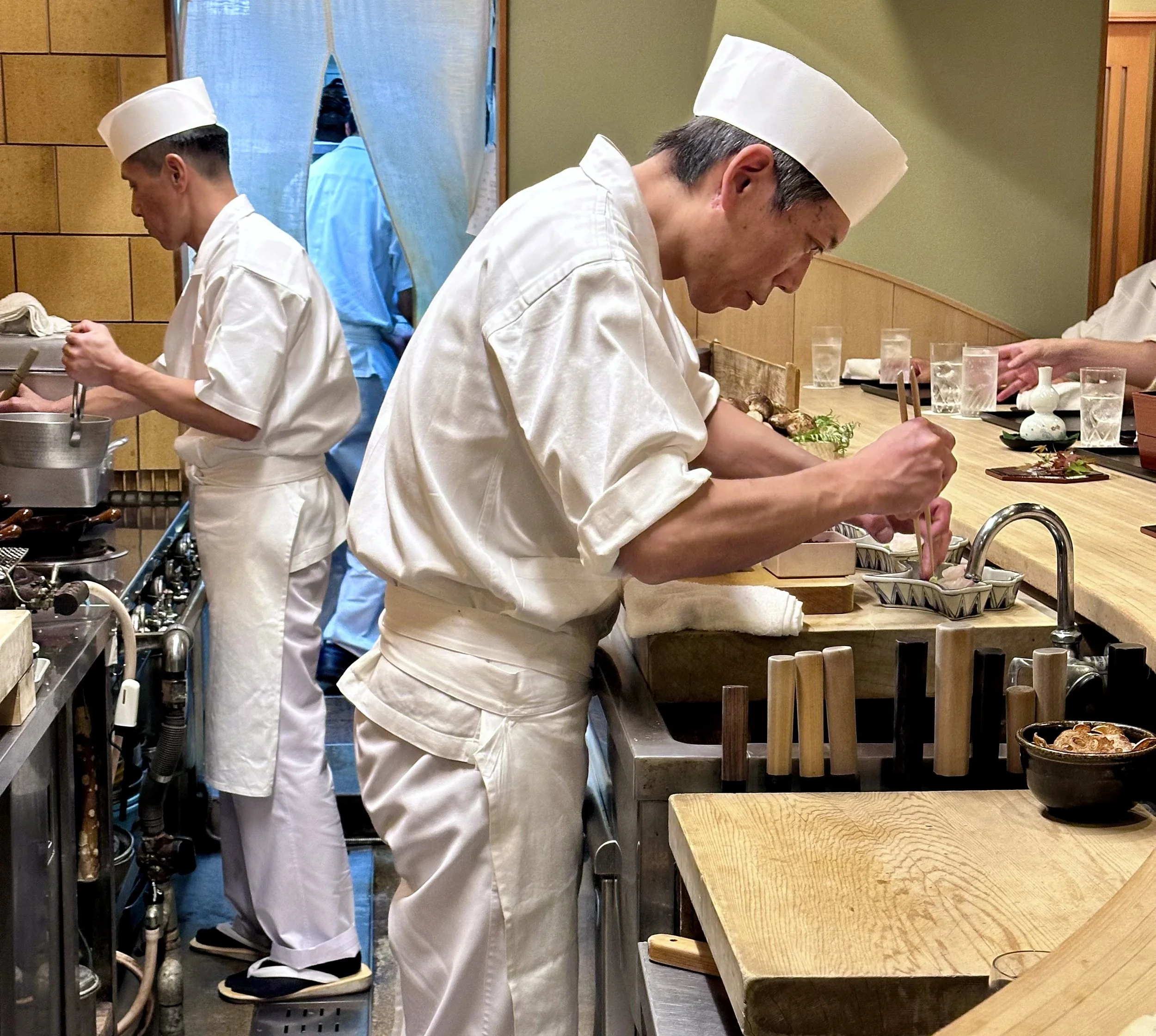 Chefs preparing our kaiseki meal